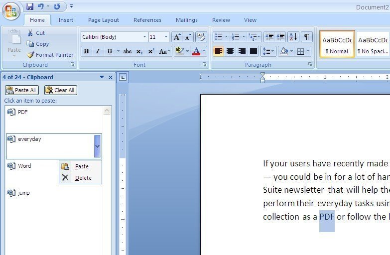 જો તમારે એક ડોક્યુમેન્ટમાંથી અલગ અલગ ટેક્સ્ટ કોપી કરીને બીજા ડોક્યુમેન્ટમાં પેસ્ટ કરવાની હોય તો કેટલી વાર કોપી-પેસ્ટ અને એકમાંથી બીજા ડોક્યુમેન્ટમાં કૂદાકૂદ કરવી પડે? તેનો સહેલો ઉપાય ક્લિપબોર્ડનો ઉપયોગ કરવાનો છે.