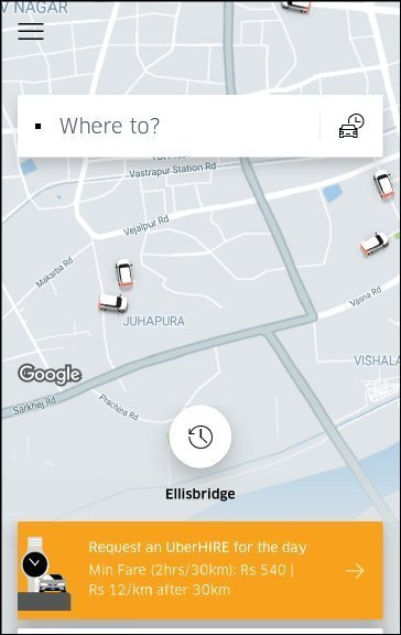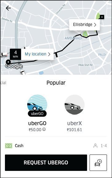 - એ સમયે સ્ક્રીન પર, આપણા લોકેશનની આજુબાજુ એ કંપનીની કેટલીક ટેક્સી ફરી રહેલી જોવા મળશે.