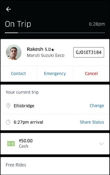 - આમાંથી જે ટેક્સી ખાલી હશે તે આપણો ઓર્ડર સ્વીકારશે. આપણે ઓર્ડર બુક કરીએ એની બે-પાંચ મિનિટમાં જ કોઈને કોઈ ટેક્સી ઓર્ડર સ્વીકારે છે અને આપણને તેનું નોટિફિકેશન મળે છે. એ સાથે એ કારના ડ્રાઇવરનો ફોટોગ્રાફ, કઈ કાર છે અને તેનો નંબર કયો છે એ પણ જણાવવામાં આવે છે.