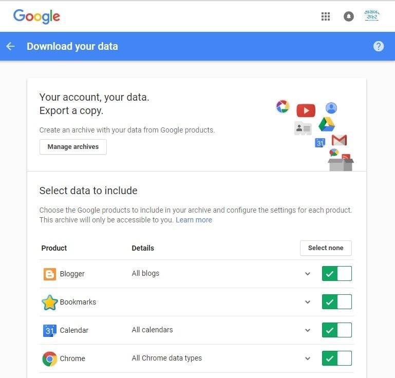 હવે ગૂગલની જે જે સર્વિસમાં તમારો ડેટા હશે તેની સંપૂર્ણ યાદી જોવા મળશે.