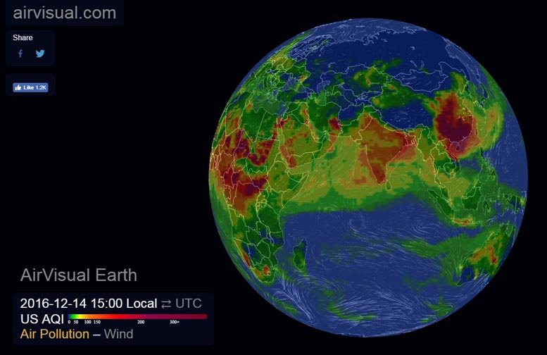 શિયાળો બેસતાં જ આપણે ઢળતી સાંજે આપણી માથે ઝળૂંબતું પ્રદૂષણ જોઈ શકીએ છીએ. આ પ્રદૂષણ આખી પૃથ્વી પર કેવી રીતે ફેલાઈ રહ્યું છે એ બતાવે છે એક ઇન્ટરએક્ટિવ મેપ.