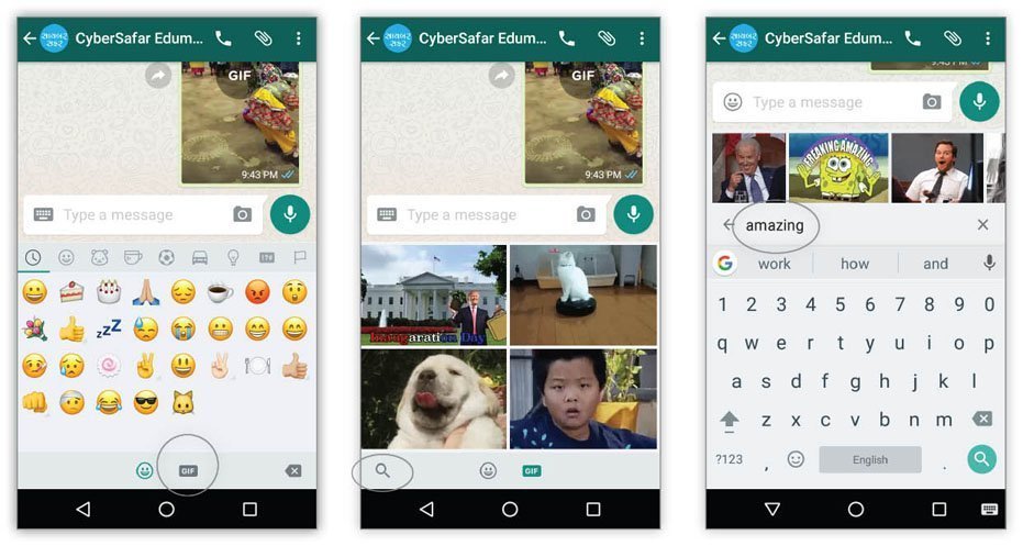 તમે કોઈ પણ મિત્ર કે ગ્રૂપમાં જેવી રીતે ઇમોજી મોકલો છો, એ જ રીતે જિફ મોકલી શકો છો.