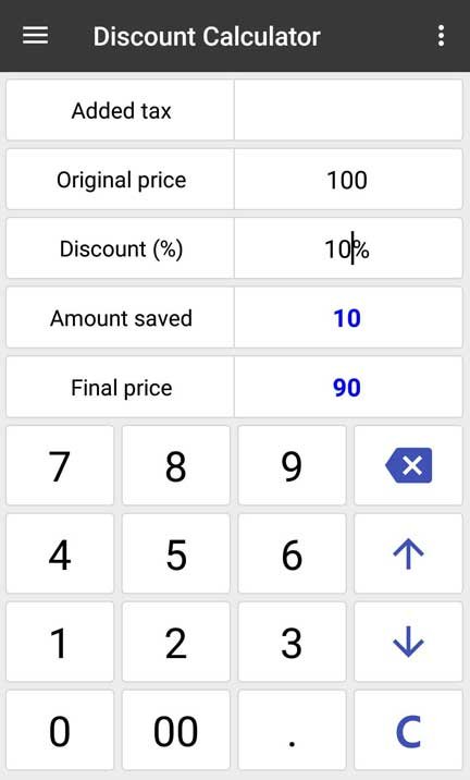 જો તમારું ગણિત થોડું કાચું હોય અને ટકામાં ડિસ્કાઉન્ટની ગણતરી કરવામાં તમે ગોથાં ખાતા હો તો આ કેલ્ક્યુલેટર ડિસ્કાઉન્ટની ગણતરી કરી આપે છે.