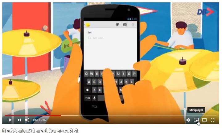 સ્માર્ટફોનમાં યુટ્યૂબ એપનો ઉપયોગ સતત વધી રહ્યો છે. આ એપમાં તમે જોયું હશે તેમ કોઈ વીડિયો પ્લે કરવાનું શરૂ કરો એ પછી બીજા કોઈ વીડિયો શોધવાનું મન થાય તો એપના મથાળે ચાલતા વીડિયોને આંગળીના લસરકે નીચે લાવતાં તે વીડિયો સ્ક્રીન પર નીચેની તરફ ગોઠવાઈ જાય છે. એ વીડિયો ત્યાં પ્લે થતો રહે છે અને આપણે એપમાં બીજા વીડિયો માટે ખાંખાં ખોળા કરવાનું ચાલી રાખી શકીએ છીએ.