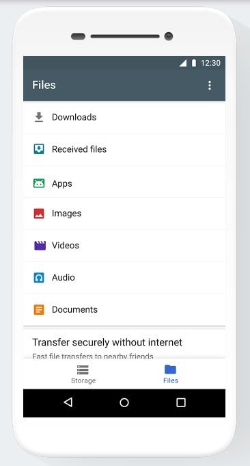 આગળ કહ્યું તેમ, ફાઇલ્સ ગો એપ એક ફોનમાંથી બીજા ફોનમાં ઇન્ટરનેટ કનેકશન વિના ફાઇલ ટ્રાન્સફર કરવાની સુવિધા પણ આપે છે.