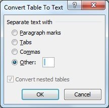 ટેબલ ટુ ટેક્સ્ટ : તમે જે ટેબલને ટેક્સ્ટમાં કન્વર્ટ કરવા માગતા હો તેને સિલેક્ટ કરો.