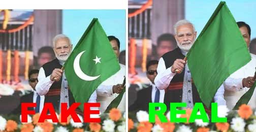 જાન્યુઆરી ૨૯, ૨૦૧૯ના દિવસે ફેસબુક પર ‘ભાષન યા રાશન’ નામના એક પેજ પર વડા પ્રધાન નરેન્દ્ર મોદી પાકિસ્તાનનો ધ્વજ લહેરાવતા હોય એવો ફોટોગ્રાફ શેર થયો, સાથે લખાણ હતું ‘આ ગયા અપની અસલિયત પર…’ આ ફોટો સાચો હોવાનું કોઈ માની ન શકે, છતાં એ ફોટો વાઇરલ થયો.