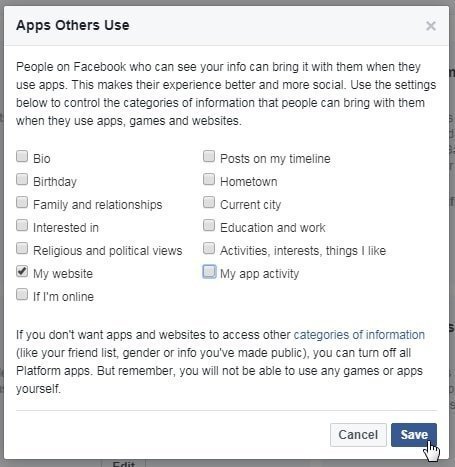 ફેસબુક કહે છે કે જો તમે તમારું ફ્રેન્ડસ લિસ્ટ, જેન્ડર ઇન્ફો કે તમે પબ્લિક કરેલો ઇન્ફો બીજી એપ્સ કે વેબસાઇટ્સ સુધી ન પહોંચે એવું ઇચ્છતા હો તો તેનો પ્લેટફોર્મ તરીકે ઉપયોગ બંધ કરી શકો છો (આગળના પાને વધુ માહિતી છે), પરંતુ એ સાથે જ ફેસબુક ચેતવે છે કે એવું કરશો તો પછી પણ કોઈ ગેમ્સ કે એપ્સનો ઉપયોગ કરી શકશો નહીં. મોટા ભાગના યૂઝર્સ આ સેટિંગ્સ સુધી પહોંચતા જ નથી.