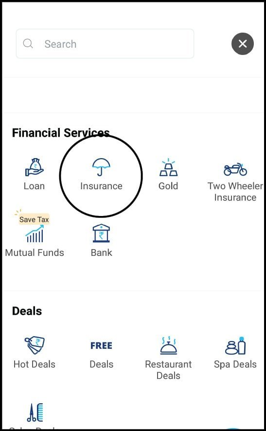સ્ક્રોલ કરીને અથવા સર્ચ બારનો ઉપયોગ કરીને ઇન્સ્યોરન્સ સર્વિસ શોધો.
