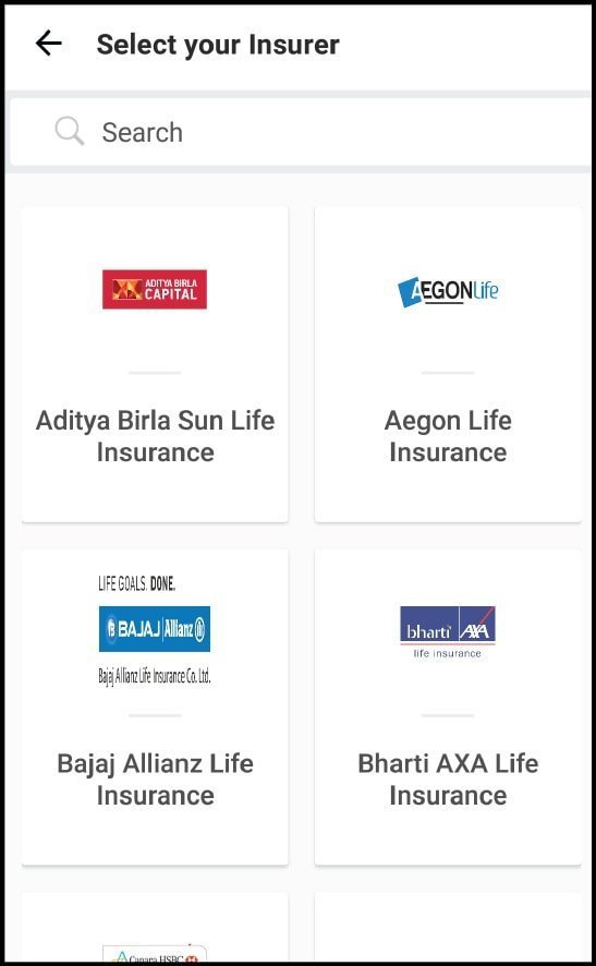 તમારી વીમા કંપની સર્ચ કરો. ધારો કે આપણે એલઆઇસીનું પ્રીમિયમ ભરવું છે.