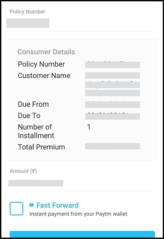 તમારી પોલિસીનો નંબર આપતાં તેની વિગતો અને કેટલું પ્રીમિયમ ભરવાનું છે તે જોવા મળશે.