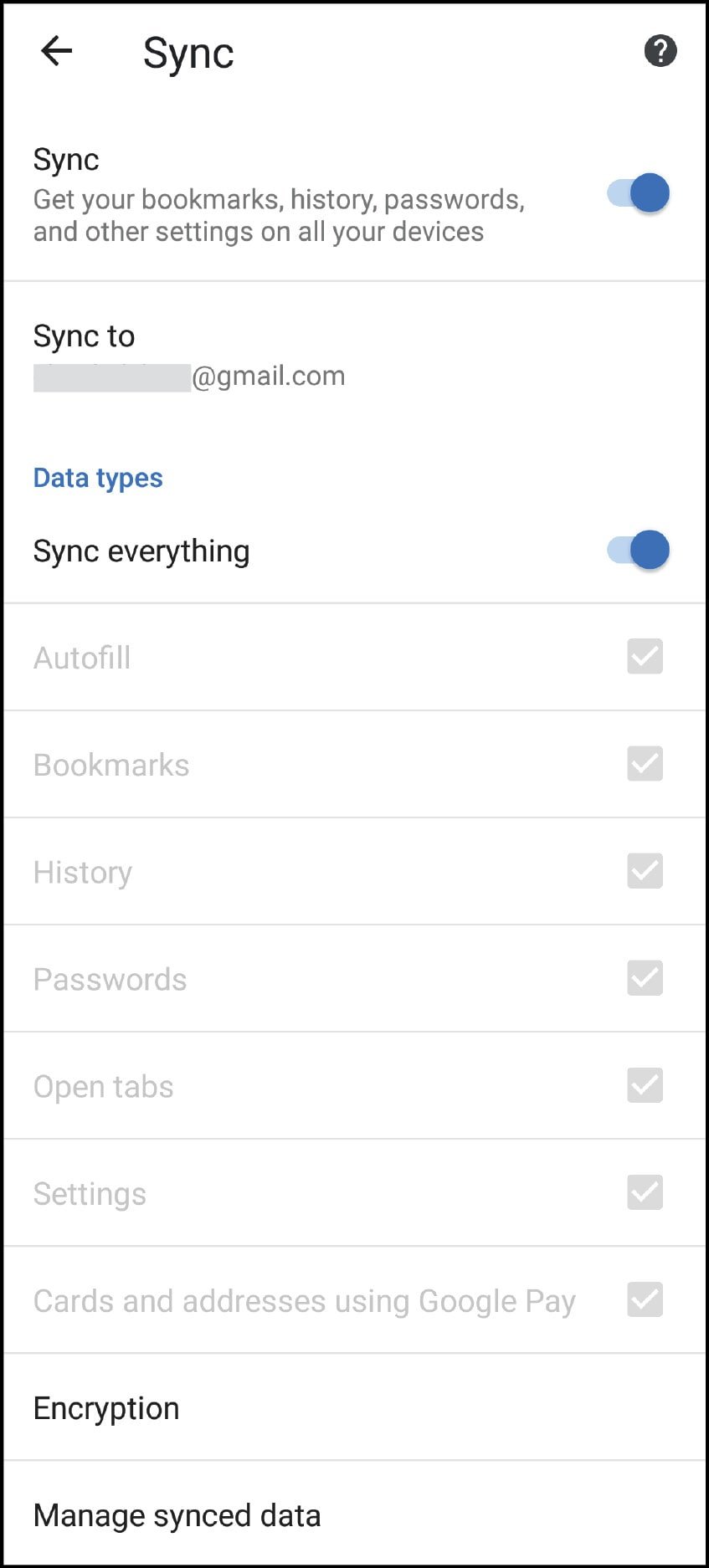 - તમે ઇચ્છો એટલી જ બાબતો સિન્ક્ડ રહે એવું કરી શકાય છે. એટલું બરાબર યાદ રાખશો કે તમે પોતે – અને માત્ર તમે જ કે પરિવારની અંગત વ્યક્તિ- જે સાધનનો ઉપયોગ કરતા હો તેમાં જ બધી બાબતો સિન્ક્ડ રાખશો. હાલ પૂરતું, આપણે બધી બાબતો માટે સિન્ક્ડ ઇનેબલ કરીએ.