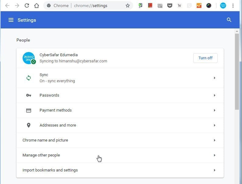 જોકે યાદ રાખશો કે ક્રોમના સેટિંગ્સમાં, તમારા જે તે ગૂગલ એકાઉન્ટથી લોગ-ઇન થશો તે પછી ક્રોમનાં તમામ સેટિંગ એ એકાઉન્ટ મુજબનાં થશે. એટલે કે તમે પર્સનલ એકાઉન્ટ માટે ક્રોમમાં અમુક એક્સટેન્શન્સ ઉમેર્યાં હોય તો તે, તમે લોગ-ઇન થાઓ તે પછી જોવા મળશે.