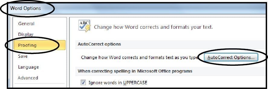 - તેમાં ‘પ્રૂફિંગ’માં ‘ઓટો કરેક્ટ ઓપ્શન્સ’માં જાઓ.