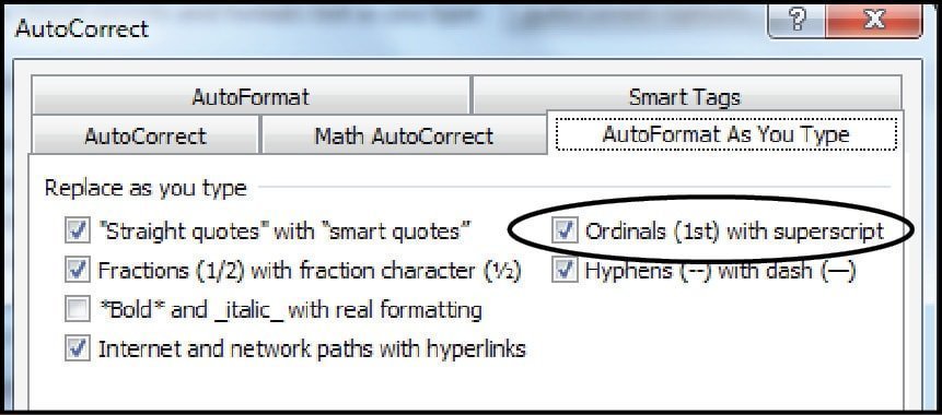 આ પણ આમ જુઓ તો ઉપયોગી સુવિધા છે. ઇંગ્લિશમાં ટાઇપ કરતી વખતે 1st કે 3rd જેવું ટાઇપ કરતાં st કે rd જેવા શબ્દો સુપર સ્ક્રિપ્ટ એટલે કે નાના થઈને ઉપરની બાજુએ (1st) ખસી જવા જોઈએ.