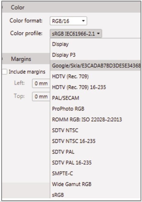 આરજીબીમાં પાછા સામાન્ય આરજીબી અને સ્ટાન્ડર્ડ આરજીબી એવા અલગ અલગ બે ફોર્મેટ છે. એ ઉપરાંત જુદા જુદા દેશ અને જુદી જુદી પ્રિન્ટિંગ ટેકનોલોજી કે કલર પેટન્ટ અનુસાર ઘણા અલગ અલગ પ્રકારની કલર સ્પેસ પ્રોફાઇલ હોય છે (જુઓ બાજુનો નીચેનો સ્ક્રીનશોટ).