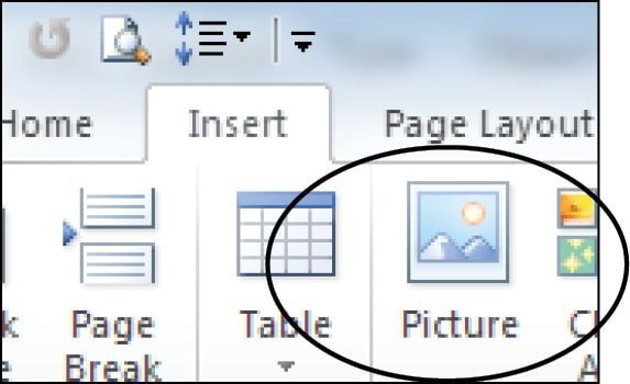 ઇન્સર્ટ સેકશનમાં ઇલેસ્ટ્રેશન્સ ટેબમાં પિકચર્સ પર ક્લિક કરતાં આપણા કમ્પ્યુટરમાંની પિકચર ફાઇલનું લોકેશન શોધવાની વિન્ડો ખૂલે છે. અહીં આપણે જોઇતું પિકચર શોધીને ઇન્સર્ટ કહીને એ ઇમેજ વર્ડ ડોક્યુમેન્ટમાં ઉમેરી શકીએ છીએ.