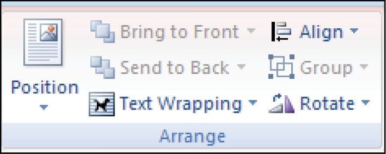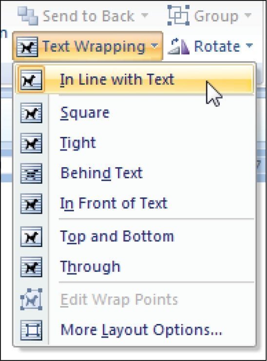 અહીં ઇમેજને ડોક્યુમેન્ટમાં ટેકસ્ટની સાથે કેવી રીતે પ્લેસ કરવી તેને સંબંધિત વિકલ્પો મળે છે. આ વિકલ્પો ખાસ્સા ગૂંચવણભર્યા બની શકે છે. અને તેમાં માસ્ટરી કેળવવા માટે થોડી પ્રેક્ટિસની જરૂર પડશે.