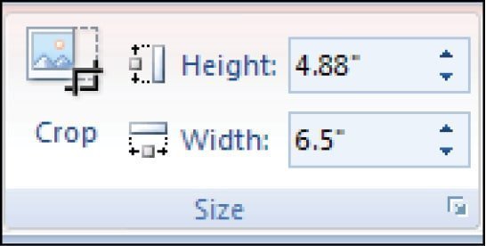 અહીં મળતા વિકલ્પો પ્રમાણમાં સહેલા છે. ક્રોપ ટૂલની મદદથી આપણે ઇમેજના વણજોઈતા ભાગને ‘દબાવી’ શકીએ છીએ તથા અહીંથી આપણે ઇમેજની હાઇટ અને વિડ્થને નક્કી કરી શકીએ છીએ. વર્ડની મજા એ છે કે તે આપણને ઇમેજની હાઇટ અને વિડ્થ પ્રપોર્શનમાં જ બદલવા દેશે. સીધી ઇમેજને માઉસથી કોઈ પણ બાજુએથી દબાવીએ એ ઇમેજની સાઇઝ બદલવાનો ખોટો રસ્તો છે. ઇમેજને ખૂણેથી પકડીને નાની મોટી કરવાથી ઊંચાઈ અને પહોળાઈનું યોગ્ય પ્રમાણ જાળવીને તે નાની મોટી થશે.