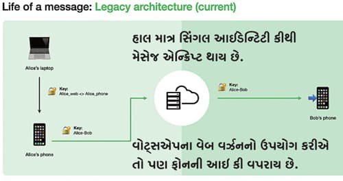 વોટ્સએપનું હાલનું સ્વરૂપ જાળવી રાખીને તેનો એકથી વધુ ડિવાઇસનો ઉપયોગ શક્ય બનાવવો એ એક રીતે એન્જિનીયરિંગ ચેલેન્જ હતી (ફેસબુક-વોટ્સએપના એન્જિનીયર્સ માટે, ટેલિગ્રામે એવું કરી બતાવ્યંુ છે!). અત્યાર સુધી વોટ્સએપના કેન્દ્રમાં સ્માર્ટફોન હતો. હવે તેને હાંસિયામાં ધકેલવાની વાત હતી. આગળની વાત થોડી ટેકનિકલ છે પરંતુ આઇટી જેમના અભ્યાસનો વિષય છે એમને તેમાં રસ પડશે!