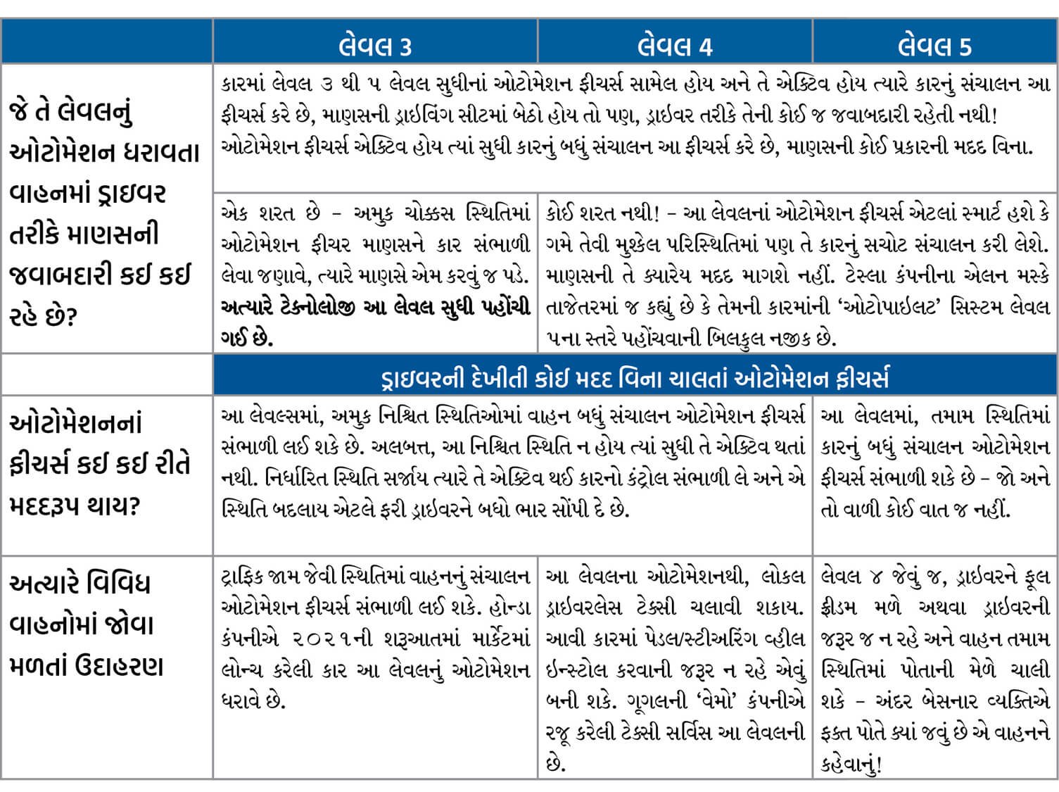 આ સવાલનો જવાબ સમય પર છોડી દઈએ. અત્યારે તો કારમાં ઓટોમેશનનાં લેવલ વિશે જાણીએ.