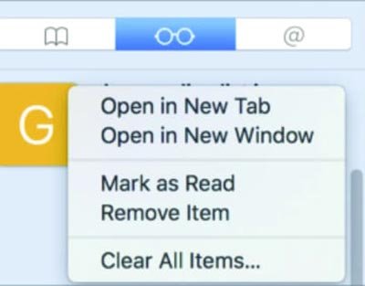 સફારીનું રીડિંગ લિસ્ટ ફિચર આપણે સેવ કરેલા તમામ આર્ટિકલ્સ આપણા તમામ ડિવાઇસમાં સિન્ક્ડ રાખે છે. આથી આપણે પોતાના મેકમાં કોઈ આર્ટિકલ સેવ કરીએ તો પછી ગમે ત્યારે તેને આઇફોન કે આઇપેડ પર વાંચી શકીએ છીએ. રીડિંગ લિસ્ટમાં આખા આર્ટિકલ અને માત્ર લિન્ક બંને સેવ કરી શકાય છે.
