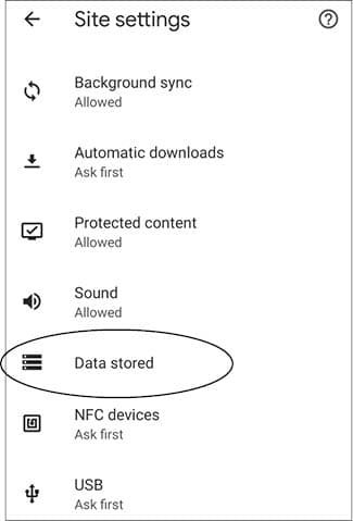 તેમાં સેટિંગ્સમાં જાઓ. તેમાં સાઇટ સેટિંગ્સમાં અને તેમાં ડેટા સ્ટોર્ડમાં જાઓ. હવે આપણે અગાઉ વિઝિટ કરેલી વિવિધ વેબસાઇટની યાદી જોવા મળશે. અને એ દરેક માટે બ્રાઉઝરે કેટલો ડેટા ડાઉનલોડ કર્યો છે એ પણ જોવા મળશે (તમારું બ્રાઉઝર ધીમું થઈ ગયું હોય કે ફોનમાં સ્પેસ ઓછી પડતી હોય ત્યારે એક કારણ બ્રાઉઝરમાં જમા થયેલો ડેટા પણ હોઈ શકે છે).
