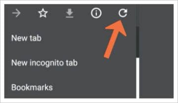 મોબાઇલમાં બ્રાઉઝરમાં ત્રણ ડોટ પર ક્લિક કરતાં જમણી તરફ જે પેનલ ખુલે તેમાં ઉપરની તરફ રીફ્રેશ બટન હોય છે. મોબાઇલમાં ઘણા બ્રાઉઝર અને એપમાં પેજને ઉપરથી નીચે તરફ સ્વાઇપ કરતા પેજ રીલોડ થાય છે.