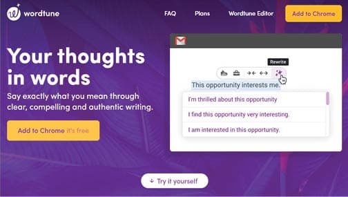 બીજા સવાલના જવાબ માટે પણ ઇન્ટરનેટ પર ઘણી સર્વિસ ઉપલબ્ધ છે. એમાંની એક છે, ‘વર્ડટ્યૂન’ (https://www.wordtune.com/).
