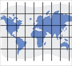 (૨) શરૂઆતમાં અક્ષાંશ અને રેખાંશમાં ૨૦ ડિગ્રીના અંતરે ચોકઠાં બનાવવામાં આવે છે. પછી દરેક રો અને કોલમને નિશ્ચિત આલ્ફાન્યૂમરિક કોડનું લેબલ આપવામાં આવે છે. આથી એક્સેલ શીટની જેમ દરેક સેલનું ચોક્કસ એડ્રેસ મળે છે.