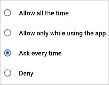 એક્સેસ કોઅર્સ લોકેશન : આ પ્રકારની મંજૂરી બહુ જોખમી નથી, તેમાં એપને આપણું કાચું પાકું લોકેશન જાણ થઈ શકે છે. આ પ્રકારમાં આપણો સ્માર્ટફોન જે સેલ ટાવર સાથે કનેક્ટેડ હોય તેને આધારે આપણું લોકેશન નક્કી થાય છે.