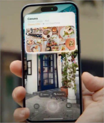 એપલે આ ફીચરની ખૂબીઓ બતાવવા માટે, કોઈ વ્યક્તિ રેસ્ટોરાં સર્ચ કરવા માટે તેનો ઉપયોગ કરતી હોય તેવો ડેમો બતાવ્યો. તેમાં રેસ્ટોરાંની ઇમેજ ક્લિક કરતાં, વિઝ્યુઅલ ઇન્ટેલિજન્સ કામે લાગે છે અને યૂઝરને રેસ્ટોરાંના વર્કિંગ અવર્સ, રેટિંગ્સ, મેનૂ, ટેબલ બુકિંગની વિગતો વગેરે બધું બતાવે છે.