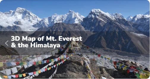 ઘેરબેઠાં હિમાલય ખૂંદવો છે? એક જર્મન કંપનીએ એવરેસ્ટ, હિમાલય અને તેના પોપ્યુલર ટ્રેકિંગ રુટ્સનો એક ઇન્ટરેક્ટિવ ૩ડી મેપ તૈયાર કર્યો છે. આ મેપ એન્ડ્રોઇડ અને આઇઓએસ એપ સ્વરૂપે પણ ઉપલબ્ધ છે.