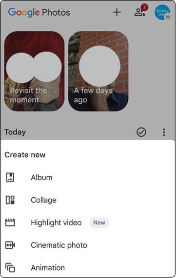 ફોનમાં ગૂગલ ફોટોઝ એપ ઓપન કરો. તેમાં સૌથી ઉપરની તરફ ‘પ્લસ’ પર ક્લિક કરો.