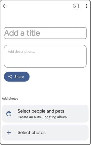 આલબમનું ટાઇટલ આપી, ‘સિલેક્ટ પીપલ એન્ડ પેટ્સ’ પસંદ કરો. ચાહો તો આ આલબમ અન્યને શેર કરો.