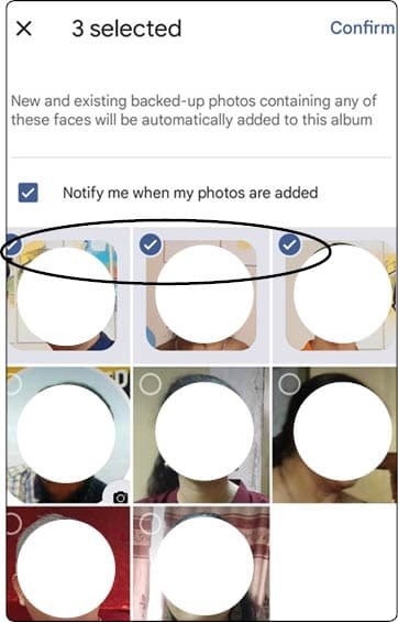 જેમનું લાઇવ આલબમ બનાવવું હોય તે વ્યક્તિઓને પસંદ કરો. ઉપર જમણી તરફ કન્ફર્મ પર ક્લિક કરો.