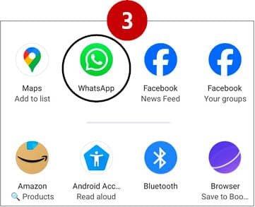 તેમાં વોટ્સએપ પસંદ કરી, જે તે લોકેશનની લિંક આપણે વોટ્સએપ પર શેર કરી શકીએ.